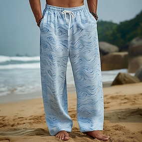 Homme Géométrique Océan Vagues Pantalons Pantalons Amples Pantalon décontracté Taille Moyenne Hawaïen Extérieur Vacances Tenue de plage Taille élastique avec cordon de serrage Pantalon en lin avec