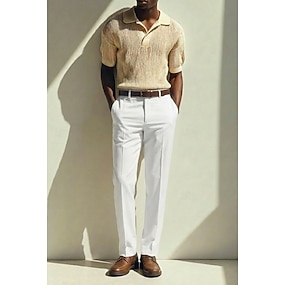 Pour des hommes Coton Lin Dress Pants works Pantalon décontracté Extérieur Affaires Élégant Mode Occasionnel Vert Armée Marine foncé Beige Couleur Unie Coupe régulière Long Non Elastique