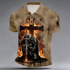 Homme Croix Polo Manche Courte Polos Chemises à Col Occasionnel Extérieur Tenue quotidienne Impression 3D Boutons Été Printemps Marron