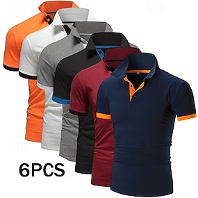 Lot de 6 polos de golf pour homme, style décontracté et sportif, manches courtes, couleur unie, coupe classique, idéal pour l'été et le printemps, toutes saisons.