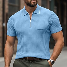 Homme Polo Polo en maille torsadée Occasionnel Rue Revers Manche Courte Basique Moderne Uni Poids Léger Respirable Été Printemps Toutes saisons Coupe régulière Noir Blanche bleu marine Kaki Gris Polo