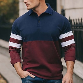 Homme Rayé Polos de Rugby manche longue Polos Col Vêtement décontracté de travaile Formel Extérieur Tenue Quotidienne Impression 3D Boutons Printemps Automne Hiver Bordeaux