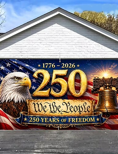 Décoration patriotique pour porte de garage commémorant le 250e anniversaire des États-Unis, idéale pour la fête de l'indépendance et les célébrations en extérieur. Parfaite pour les fêtes et les célébrations.