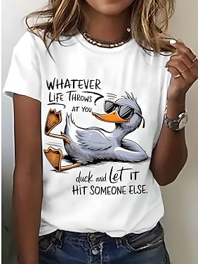 Femmes T-shirt Imprimé Graphique Animal Oiseau ancien Élégant Classique Manche Courte Col ras du cou Col rond Hauts Réguliers Quotidien Week-end Bleu Noir Blanche Rose Claire Violet Été Printemps