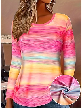 Femmes T-shirt A Ombre Graphique Dégradé de couleur ancien Élégant Classique manche longue Col ras du cou Col rond Hauts Réguliers Quotidien Imprimé Rose Claire Printemps Automne Hiver
