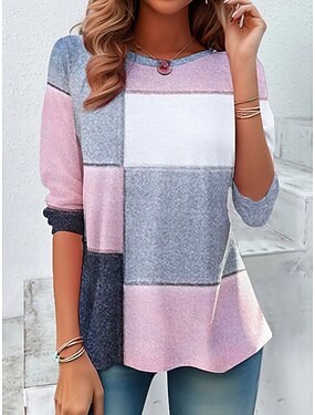 T-shirt Femme Col Rond Manches Longues Tunique Graphique Géométrique Décontracté Col Rond Tops Réguliers Imprimé Quotidien Pink Violet Vert Automne