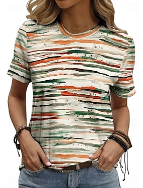 Femmes T-shirt Imprimé Graphique Géométrique Rayé ancien Élégant Classique Manche Courte Col ras du cou Hauts Réguliers Occasionnel Quotidien Bleu Vert Claire Rose Claire Marron clair Noir Ét