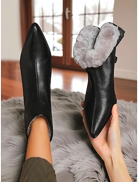 Bottines d'hiver noires pour femme en similicuir, bordées de fourrure et à talon aiguille, style chic et confortable, parfaites pour l'hiver, les sorties au bureau et les fêtes de fin d'année.