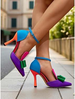 Escarpins à bride arrière multicolores pour femmes - escarpins élégants à bout pointu avec nœud décoratif &Des touches de néon pour la mode urbaine quotidienne, des tenues de travail chics &activités
