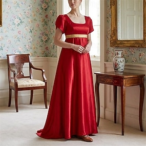 19ème siècle Période de la Régence Longueur cheville Robe Manches courtes Princesse Dame Noble Couleur Unie Déguisement Femmes Royal Halloween Carnaval Fête du thé LARP Foire de la Renaissance Adulte