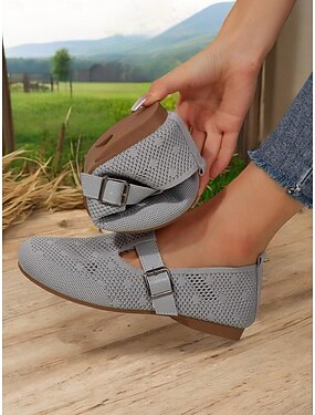 chaussures Mary Jane grises à coupe large pour femmes – chaussures plates pieds nus légères et respirantes pour la marche, les vêtements décontractés et les voyages