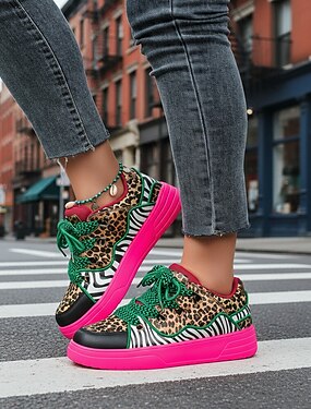 Baskets fluo à imprimé léopard pour femmes - baskets à plateforme bicolores audacieuses avec rayures zébrées - chaussures streetwear artistiques uniques pour les festivals urbains