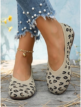 Ballerines beiges à imprimé floral pour femme, confortables et respirantes, idéales pour les jours de match et les supportrices. &vêtements de tous les jours