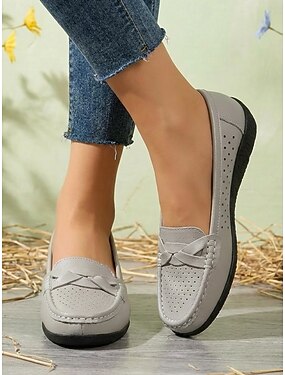 Mocassins perforés pour femmes - chaussures blanches confortables à enfiler avec détails tressés, parfaites au quotidien, au bureau et pour les sorties décontractées.