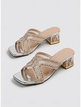 sandales à talons en strass pour femmes – mules à bout carré scintillant avec talons blocs pour fêtes, soirées et occasions spéciales