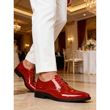 Chaussures habillées pour homme en similicuir verni rouge – un design élégant pour les mariages, les soirées et les réceptions formelles