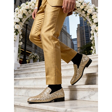 Chaussures habillées pour hommes à paillettes dorées – un modèle haut de gamme pour les mariages formels et les événements glamour