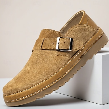 Mocassins à boucle en daim beige pour homme, chaussures décontractées à enfiler, style rétro, confortables et faciles à porter au quotidien, au bureau, en voyage, le week-end, pour un style chic décontracté ou business casual.