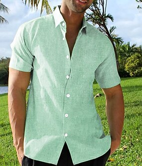 Homme Chemise en lin Chemise hawaïenne Chemise Boutonnée Vacances Quotidien Rose Claire Bleu Vert Manche Courte Col Rabattu Été Printemps Vêtement Tenue chemises à col