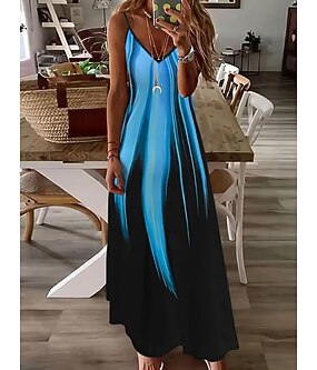 Femmes Robe maxi Robe d'Été Robe trapèze Robe Nuisette Vacances Occasionnel Boho Plage Coupe régulière Graphique Abstrait Sans manches Col en V Bleu Noir Rose Claire Rouge Été Printemps