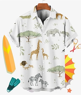 Homme Animal Arbre Girafe Chemise Chemise hawaïenne Chemise Aloha Manches courtes Chemise Col rabattu Tropique Mode Hawaïen Plein Air Casual Hawaïen Jaune Bleu Gris S M L