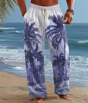 Homme Cocotier Palmier Plantes Tropicales Pantalons Pantalons Amples Pantalon décontracté Taille Moyenne Hawaïen Extérieur Vacances Tenue de plage Taille élastique avec cordon de serrage Pantalon en