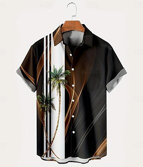 Homme Cocotier Vagues Chemise Chemise hawaïenne Chemise Boutonnée Manche Courte Hawaïen Fête Tenue de plage Été Printemps Col Rabattu Impression 3D chemises à col Une poche avant Noir