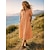 Robe midi femme, robe en faux lin, robe chemise, robe décontractée, robe trapèze, mode moderne, quotidien, vacances, sorties, coupe ample, rayée, manches courtes, col, orange, été, printemps, automne