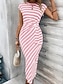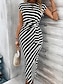 Femmes Robe Longue Maxi Robe Robe Décontractée Robe évasée Mode Extérieur Soirée Fête Coupe régulière Rayé Manche Courte Épaules Dénudées Bleu Noir Rouge Été