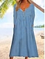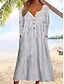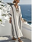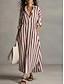 Robe Maxi Femme Lin Similaire Respirant Léger Robe A Ligne Robe d'Été Décontractée Quotidienne Coupe Lâche Rayée Manches 3/4 Col en V Bleu Blanc Rouge Beige Été Printemps Automne
