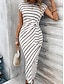 Femmes Robe Midi Robe Décontractée Occasionnel Quotidien Extérieur Fête Coupe Ample Rayé Sans manches Col ras du cou Noir Blanche Été Printemps