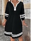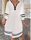 Femmes Mini Robe Robe trapèze Robe d'été Occasionnel Quotidien Coupe Ample Rayé Manche 3/4 Col en V Noir Blanche Été Printemps Automne