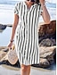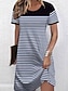 Robe Mini Femme Robe A Ligne Robe T Shirt Robe Tee Décontractée Vacances Quotidienne Ajustement Régulier Graphique Rayé Manches Courtes Col Rond Noir Été Printemps