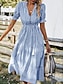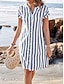 Femmes Robe Midi Robe Décontractée Robe d'été Mode Moderne Quotidien Plage Week-end Coupe régulière Rayé Manche Courte Col en V Bleu Été Printemps Automne