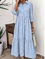 Femmes Robe maxi Robe Chemise Robes en coton et lin Robe Décontractée Robe trapèze Moderne Occasionnel street style Quotidien Extérieur Vacances Coupe Ample Rayé manche longue Col de chemise Bleu