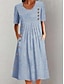 Femmes Robe Midi Robe Décontractée Robe en Coton Mode Moderne Extérieur Vacances Fête Coupe régulière Rayé Manche 3/4 Col ras du cou Bleu clair Été Printemps