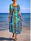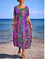 Femmes Robe maxi Robe trapèze Robe d'été Vacances Occasionnel Quotidien Fête Coupe Ample Fleuri Graphique Rayé Demi Manches Col ras du cou Bleu Rouge Violet Vert Été