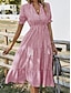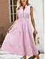 Femmes Robe Midi Robe d'été Robe Plissée Vacances Occasionnel Fête Coupe Ample Graphique Rayé Demi Manches Col ras du cou Vert Claire Rose Claire Bleu Violet Été