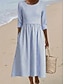 Femmes Robe Midi Robe Décontractée Robe en Coton Robe trapèze Mode Moderne Quotidien Vacances Fête Coupe régulière Rayé Manche 3/4 Col ras du cou Bleu clair Été Printemps