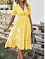 Femmes Robe Midi Robe Décontractée Robe évasée Élégant Mode Moderne Extérieur Vacances Sortir Coupe régulière Rayé Manche Courte Col en V Bleu Jaune Rose Claire Vert Été Printemps