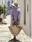 Femmes Robe Midi Faux coton lin Robe en coton et lin Mode Moderne Vacances Sortir Week-end Coupe régulière Rayé manche longue Col de chemise Bleu Jaune Vert Claire Rose Claire Été Printemps