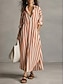Femmes Robe maxi Robe Chemise Robe Décontractée Robe Imprimée Élégant Mode Moderne Extérieur Vacances Week-end Coupe régulière Graphique Rayé manche longue Col de chemise Rouge Orange Vert Ét