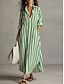 Femmes Robe Maxi Faux coton lin Robe Caftan Robe Décontractée Style Moderne Quotidien Week-end Coupe Ample Rayé manche longue Col fendu Rouge Vert Gris Été Printemps