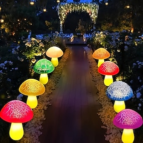 Lampes solaires extérieures étanches 8 en 1 en forme de champignon craquelé, lampes LED décoratives pour jardin, cour, parterre de fleurs, allée, pelouse, terrasse, villa, ferme – éclairage paysager