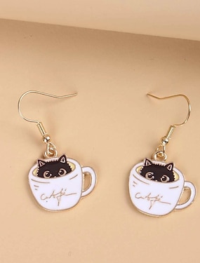 1 paire Boucle d'Oreille Pendantes For Femme Anniversaire Cadeau Rendez-vous Alliage Classique Chat tasse