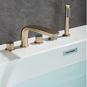 Robinet de baignoire sur pied, robinet de baignoire sur pied pivotant à 360°, robinet de baignoire sur pied avec douchette, robinet de baignoire sur pied, robinets de baignoire avec douchette, ensemble de robinetterie de salle de bain en laiton, doré