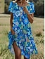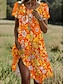 Femmes Robe Longueur Genou Robe bohème Robe Fleurie Robe d'été ancien Robe élégante Quotidien Plage Week-end Coupe régulière Fleuri Manche Courte Col ras du cou Bleu Orange Été Printemps