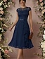 Robe mi-longue Femme robe soirée Manche Courte Eté Printemps Automne - Mode Moderne Robe chic Dentelle Patchwork Multirang Couleur monochrome Col Ras du Cou Vacances robe demoiselle d honneur Robe