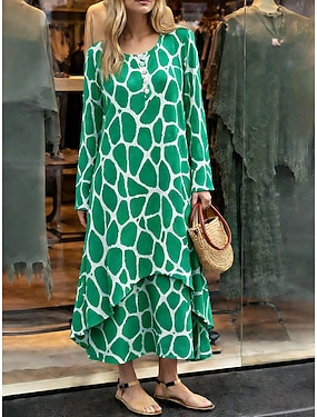 Femmes Robe Maxi Robe fourreau Robe trapèze Fête Occasionnel Boho Date Coupe Ample Graphique Animal Léopard manche longue Col ras du cou Violet Kaki Printemps Automne Hiver