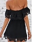 Femmes Mini Robe Robe Blanche Robe en Dentelle Robe Décontractée Élégant Mode Romantique Plage Vacances Sortir Coupe régulière Uni Manche Courte Épaules Dénudées Noir Blanche Été Printemps